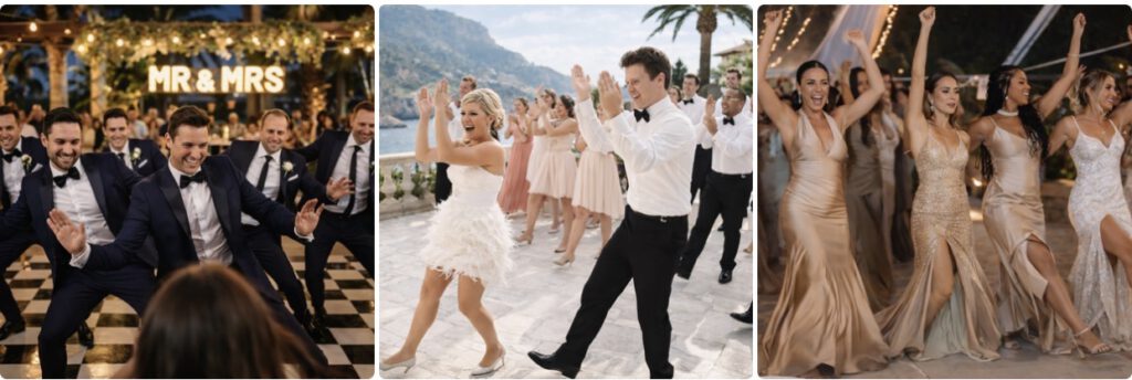 zum Beispiel ein gemeinsamer, ruhiger Hochzeitstanz oder eine Überraschung mit Euren Trauzeugen und Freunden.